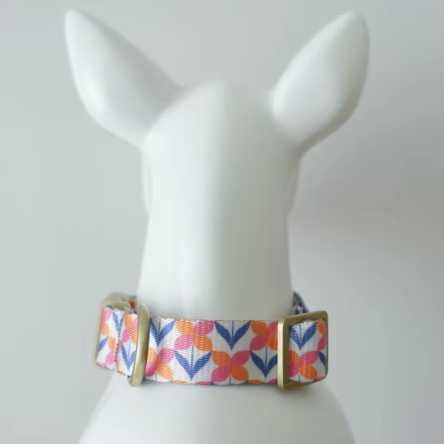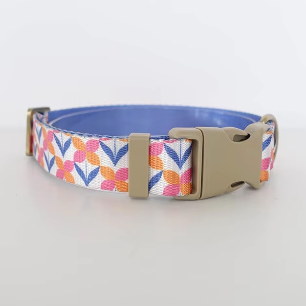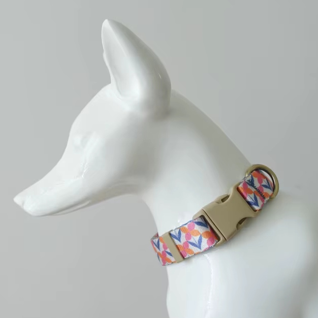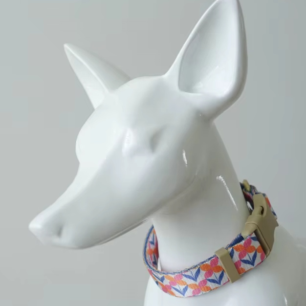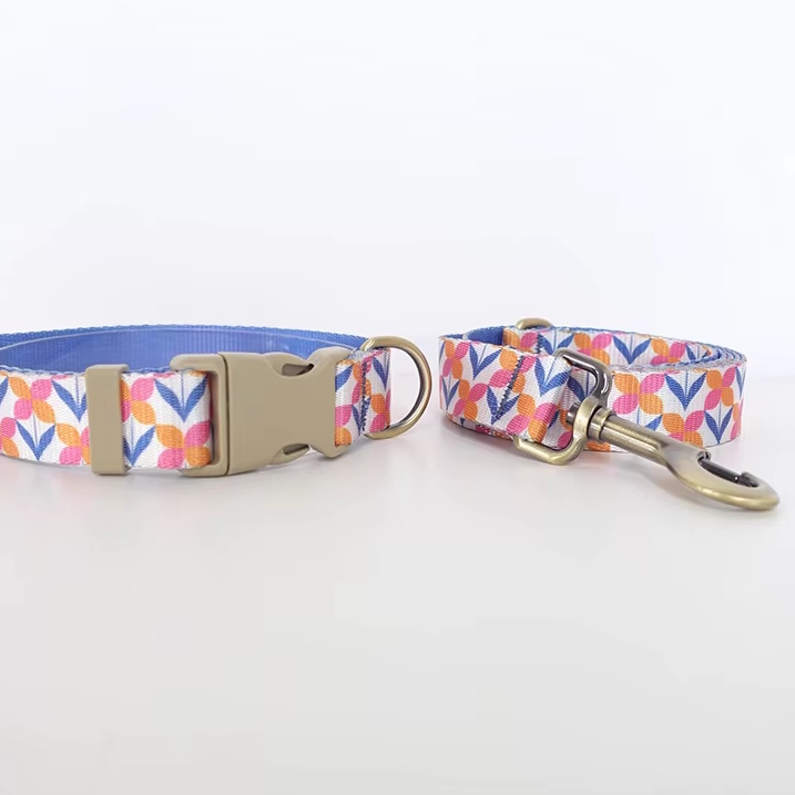 海外直輸入のおしゃれな首輪&リード。ナイロン地に模様がプリントされています。