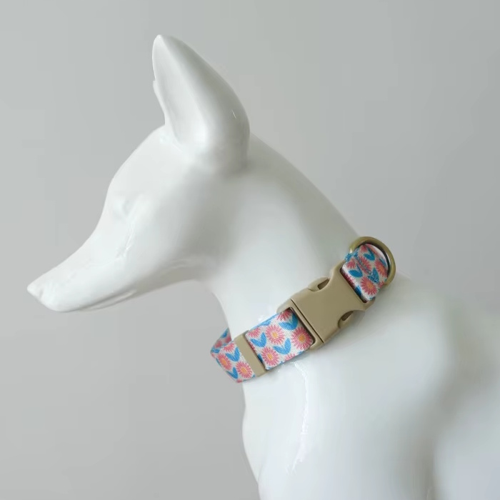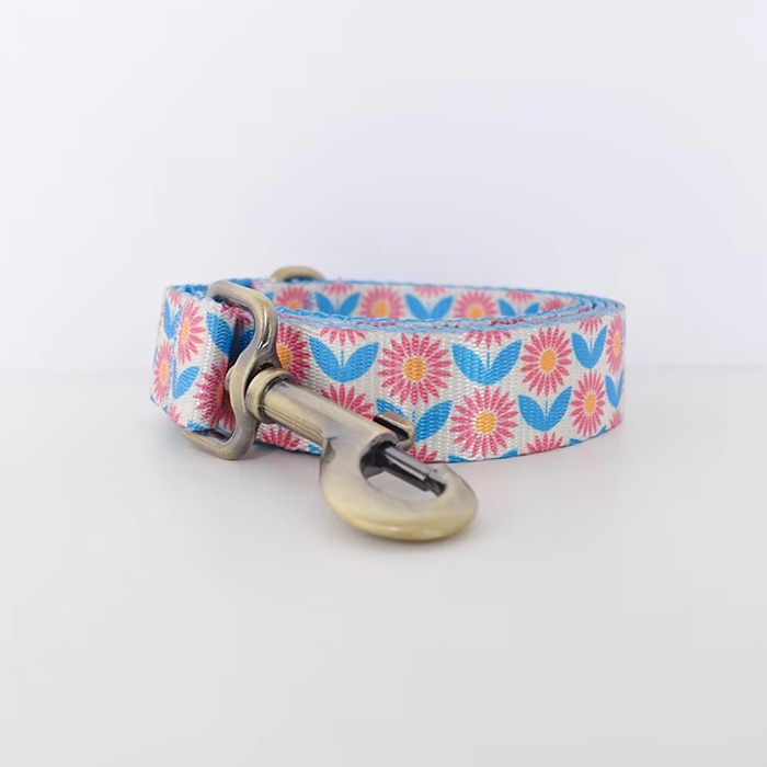 海外直輸入のおしゃれな首輪&リード。ナイロン地に模様がプリントされています。