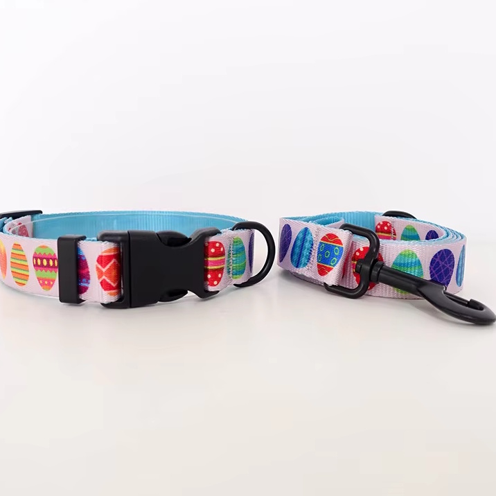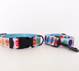 海外直輸入のおしゃれな首輪&リード。ナイロン地に模様がプリントされています。