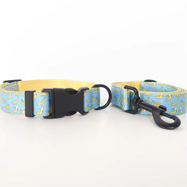 海外直輸入のおしゃれな首輪&リード。ナイロン地に模様がプリントされています。
