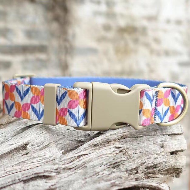 海外直輸入のおしゃれな首輪&リード。ナイロン地に模様がプリントされています。