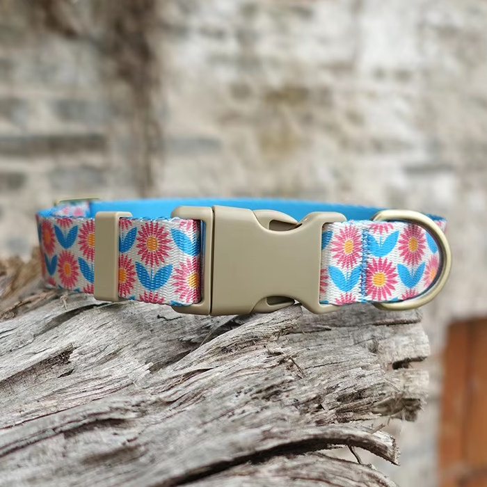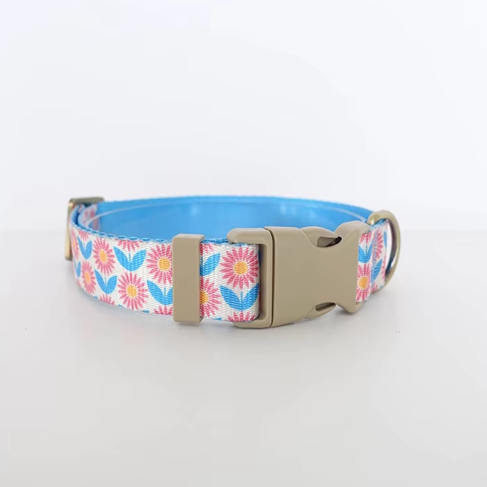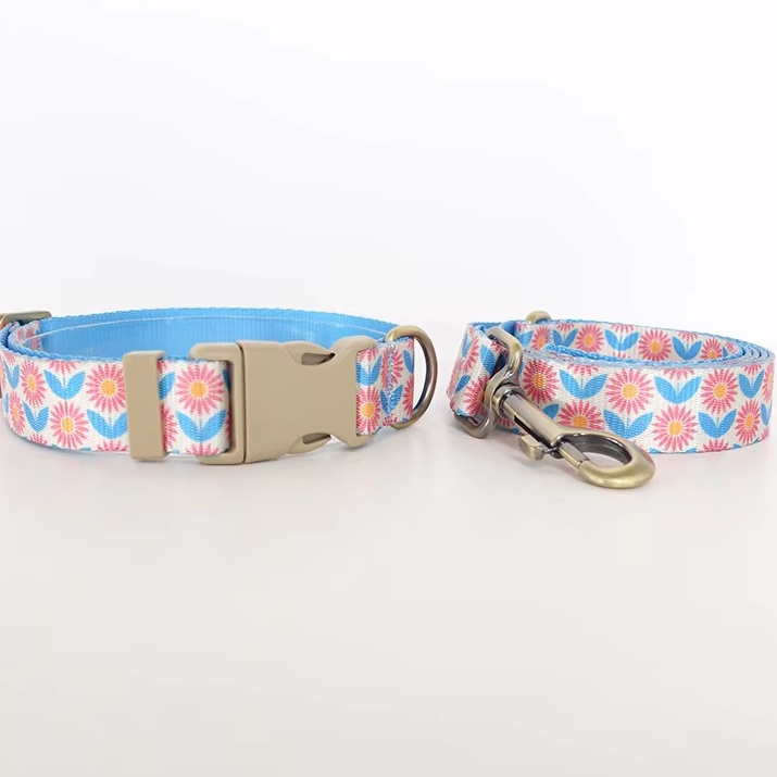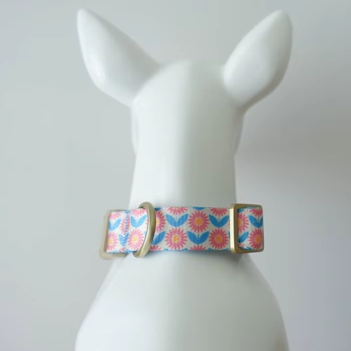 海外直輸入のおしゃれな首輪&リード。ナイロン地に模様がプリントされています。