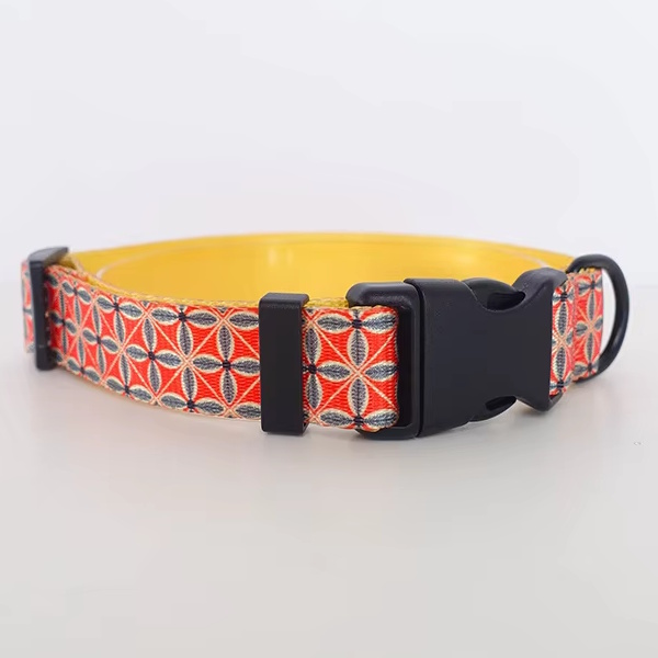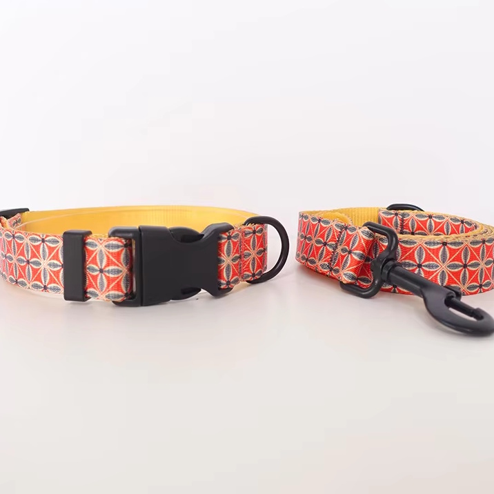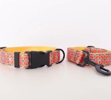 海外直輸入のおしゃれな首輪&リード。ナイロン地に模様がプリントされています。