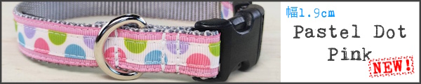 パステル調のドットが並んだポップな首輪♪気分が上がる優しく明るい色合いだから、お散歩が楽しくなりますよ♪